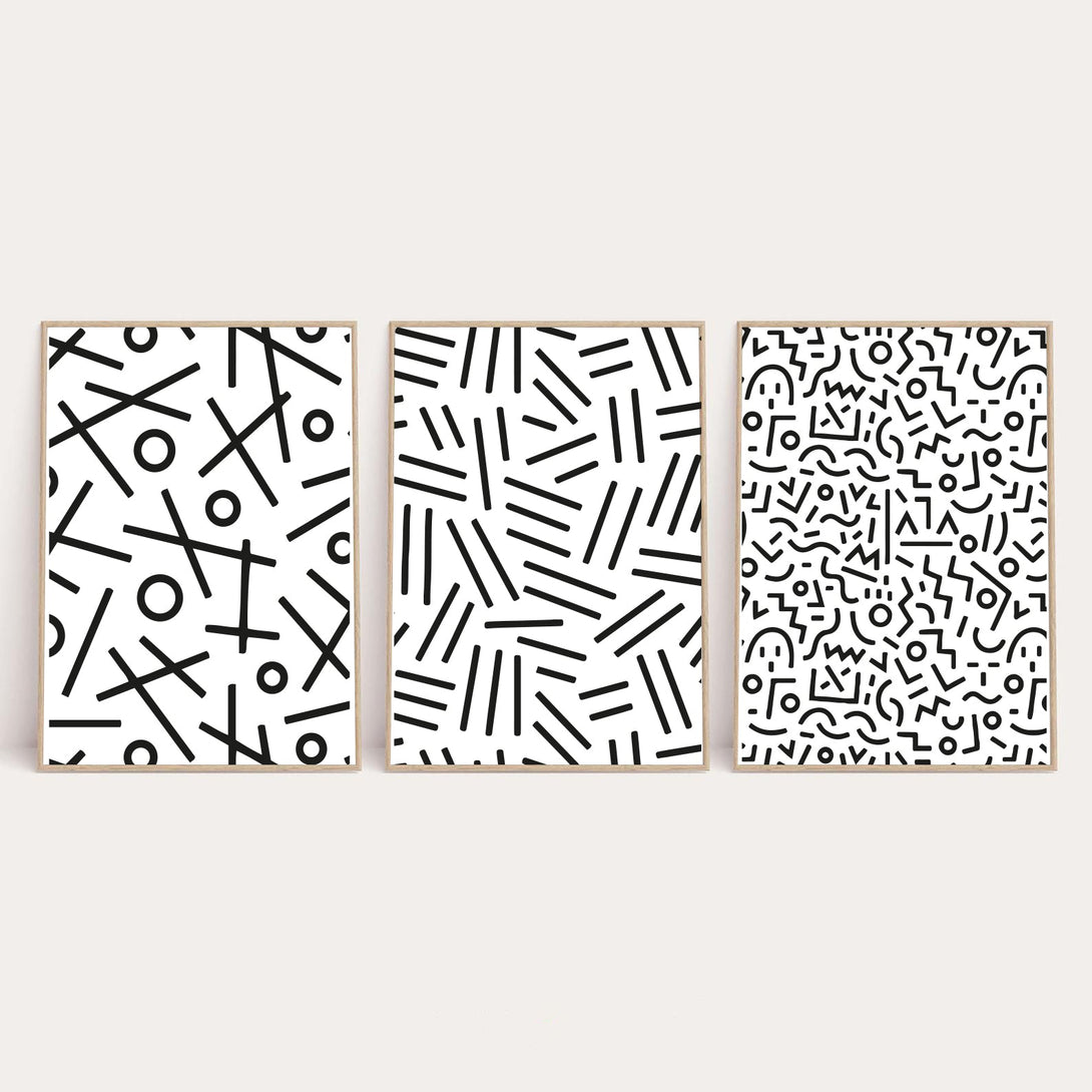 Simple Abstract Set Of 3 Line Bedroom Wall Decor Prints