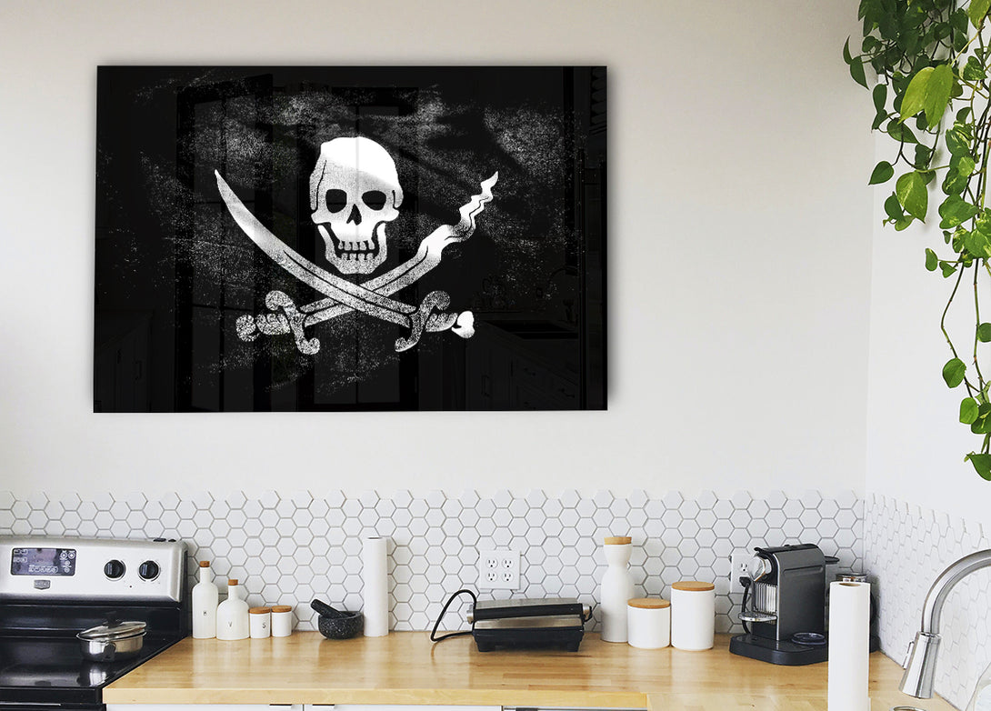 Skull And Crossbone acrylic print, UV printed onto 5mm thick acrylic glass. Comes with everything you need to hang on your wall.