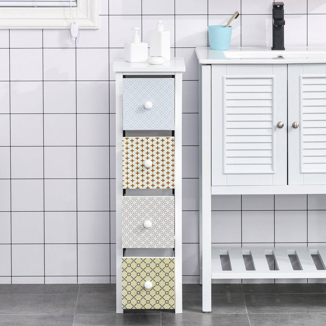 Mix n' match it up with this patterned cabinet from HOMCOM. There are four small drawers for a decent amount of storage, each with a different design for a striking look made to make your home stand out. It's made from MDF, so it's durable and sturdy, supporting itself properly every day. Finished with safe anti-tipping straps and handles on all drawers to open and close easily.