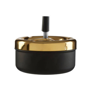 Crafted from robust iron, this rounded spinning tray has a matte black base, covered with a warm gold finish top. It features a spinning mechanism that transfers loose ash from the surface to the base. This helps to eliminate the odours associated with conventional ashtrays, helping to keep the room smelling fresh.
