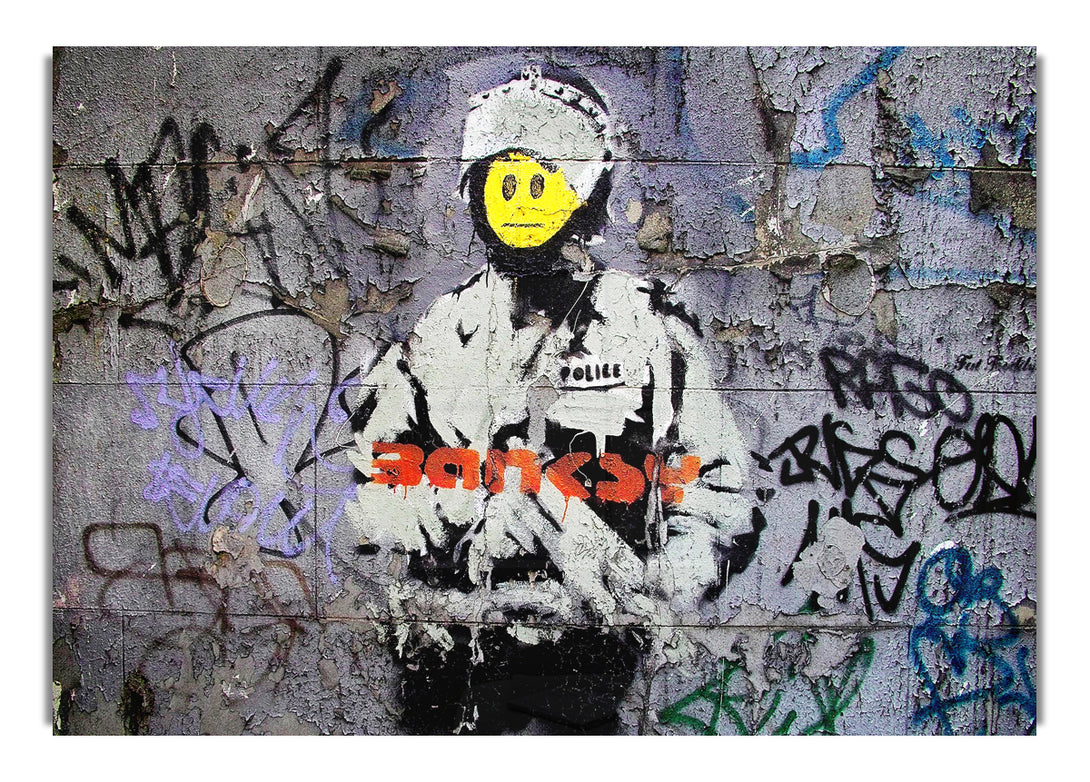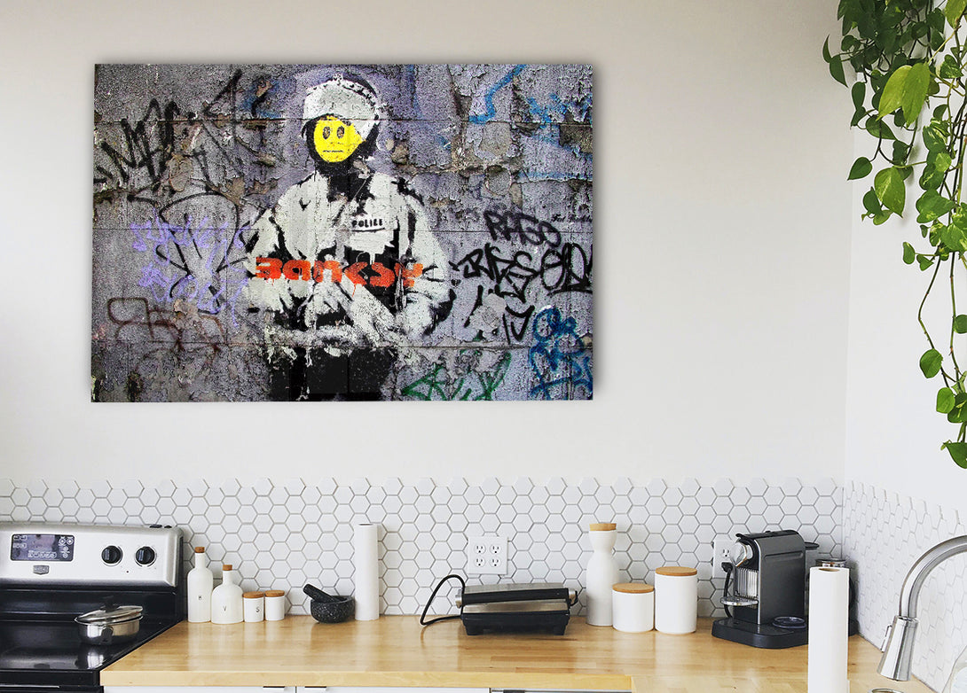Smiley Soldier acrylic print, UV printed onto 5mm thick acrylic glass. Comes with everything you need to hang on your wall.
