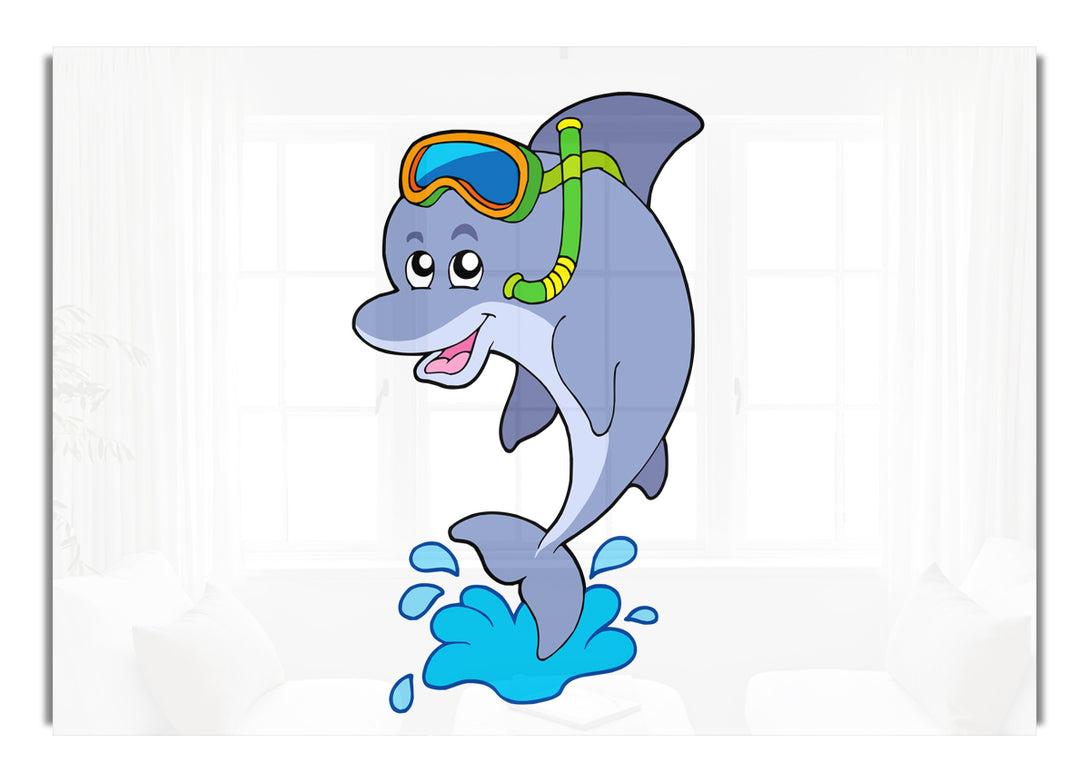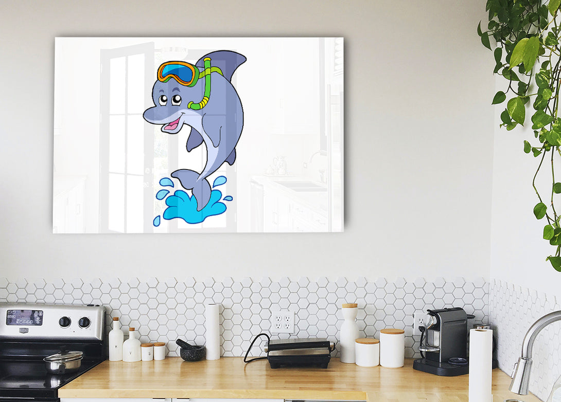 Snorkeling Dolphin White acrylic print, UV printed onto 5mm thick acrylic glass. Comes with everything you need to hang on your wall.