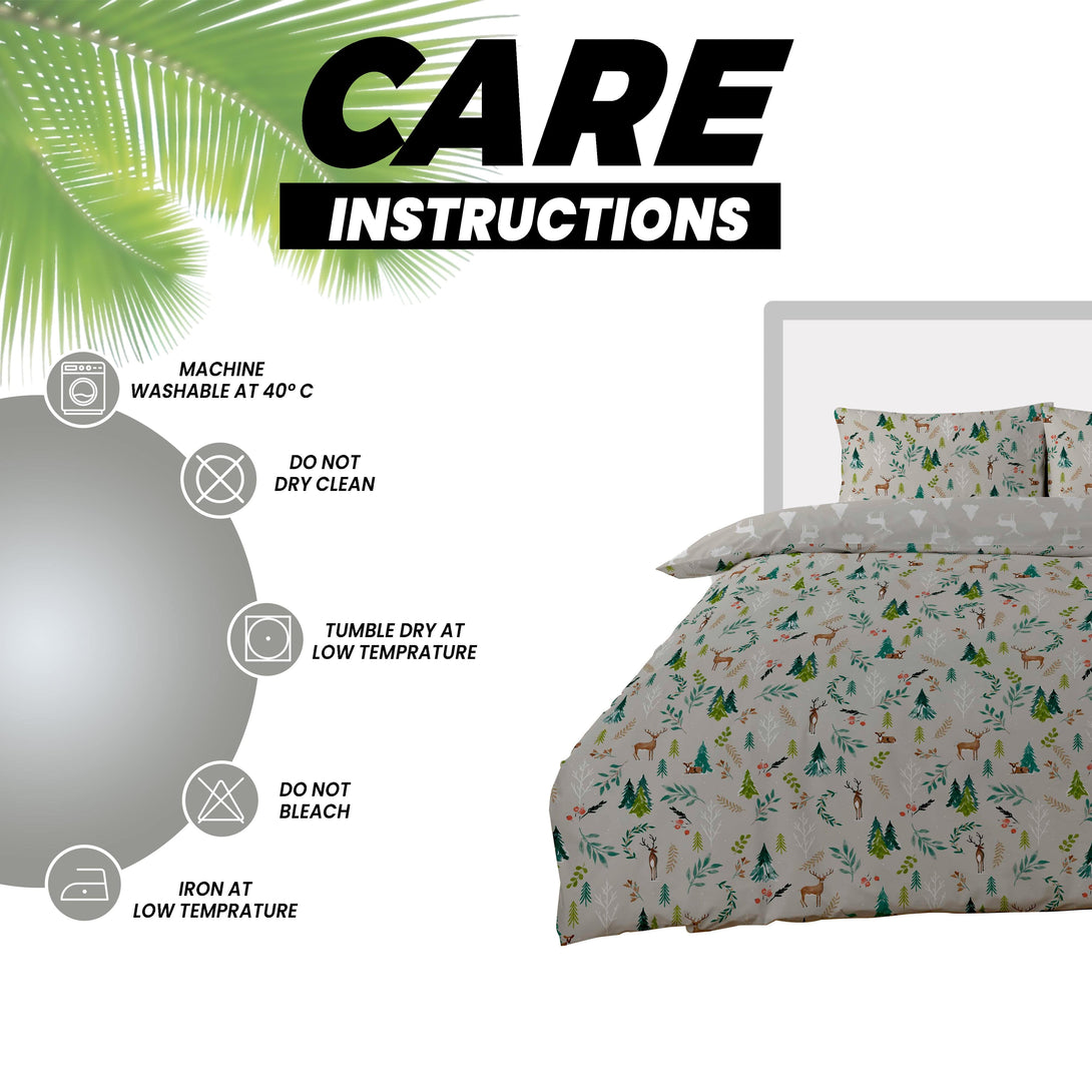 Snowy Reindeers Reversible Duvet Cover Set with Pillowcases Soft Polycotton Quilt Bedding for Year-Round Comfort by OLIVIA ROCCO