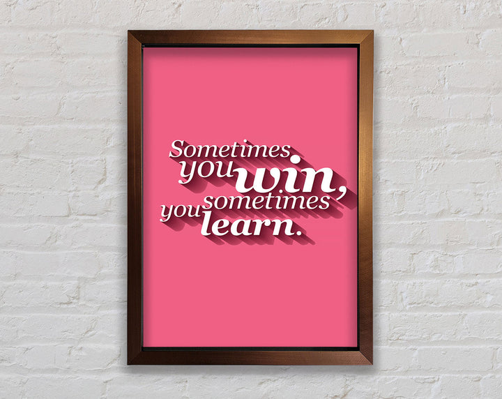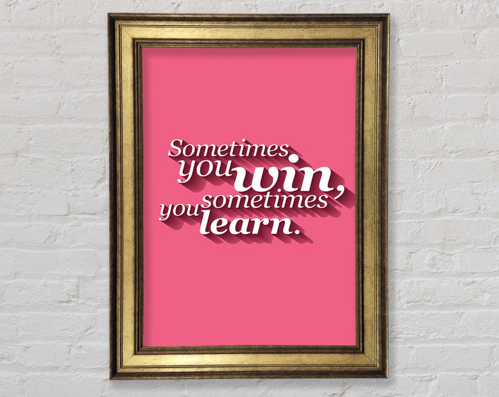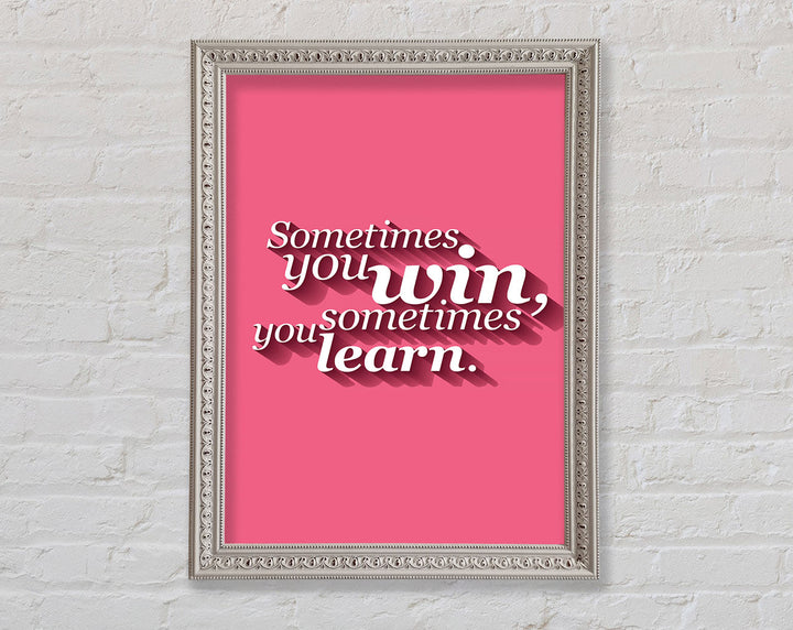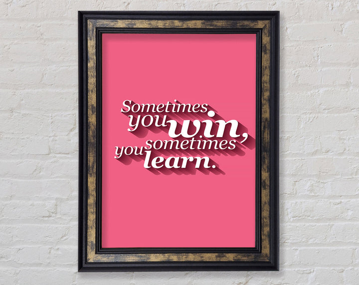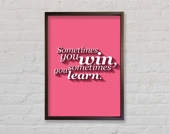 Add a touch of inspiration to your space with the "Sometimes You Win" Framed Print. This beautiful piece of framed art is perfect for any room, offering a motivational message to uplift your day. Each print is handmade in the United Kingdom, ensuring a high-quality finish and unique charm. Available in six sizes, from small to oversized, you can choose the perfect fit for your wall. The variety of colors allows you to match the print to your existing decor effortlessly. Plus, it comes ready to hang, making it easy to add an elegant and meaningful statement to your home or office.