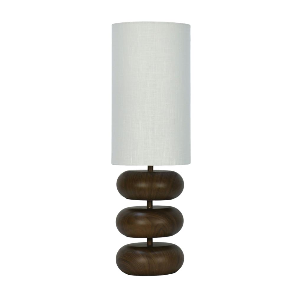 The Sorrel Wood Effect Table Lamp is a statement piece that combines sculptural design with natural charm. Exclusive to Pagazzi Lighting, it features a striking wooden-effect base crafted from three stacked spheres, giving it a bold yet elegant silhouette. The look is finished with a long white shade that casts a soft, ambient glow, perfect for creating a warm and inviting atmosphere.