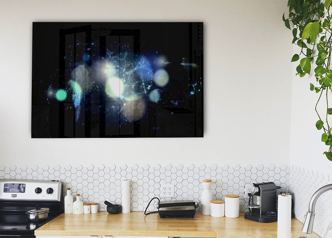 Space Bokeh acrylic print, UV printed onto 5mm thick acrylic glass. Comes with everything you need to hang on your wall.