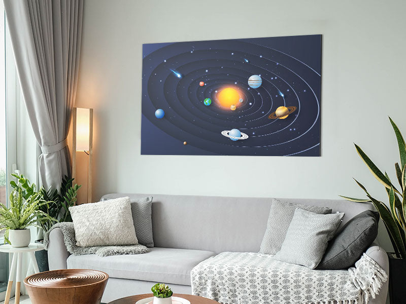 Space Rings Solar System Printed on brushed aluminium dibond. A modern way to display art and easy to maintain.
