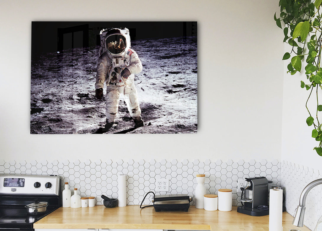 Spaceman On The Moon acrylic print, UV printed onto 5mm thick acrylic glass. Comes with everything you need to hang on your wall.
