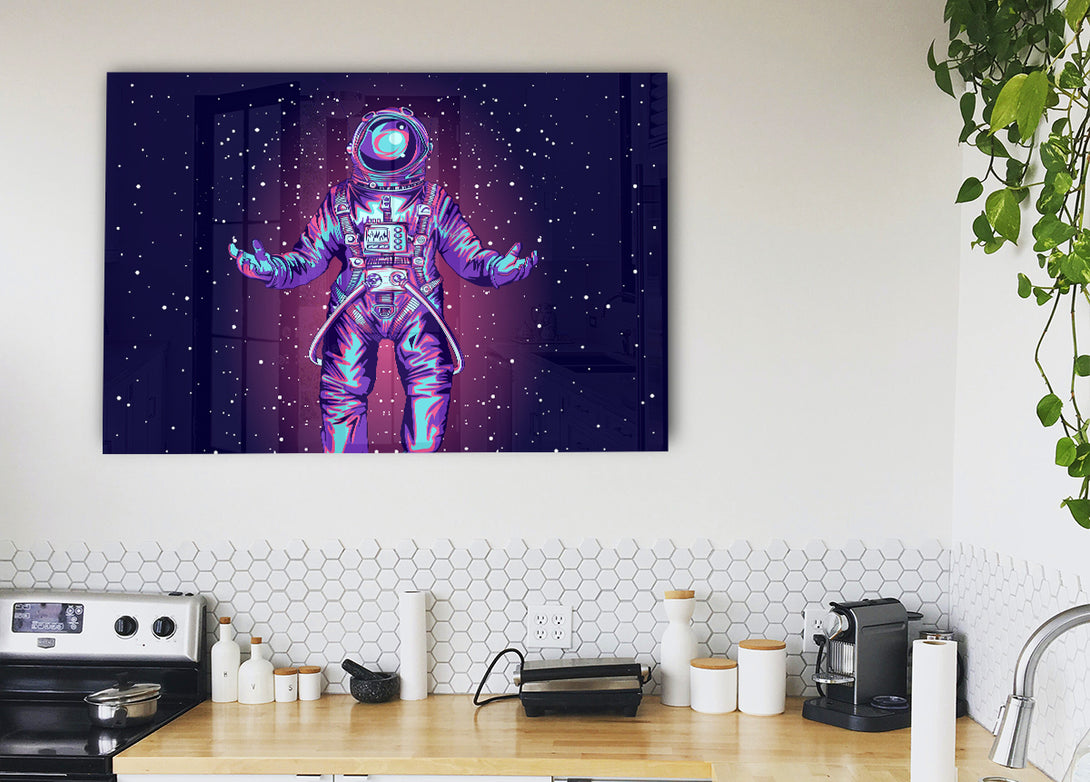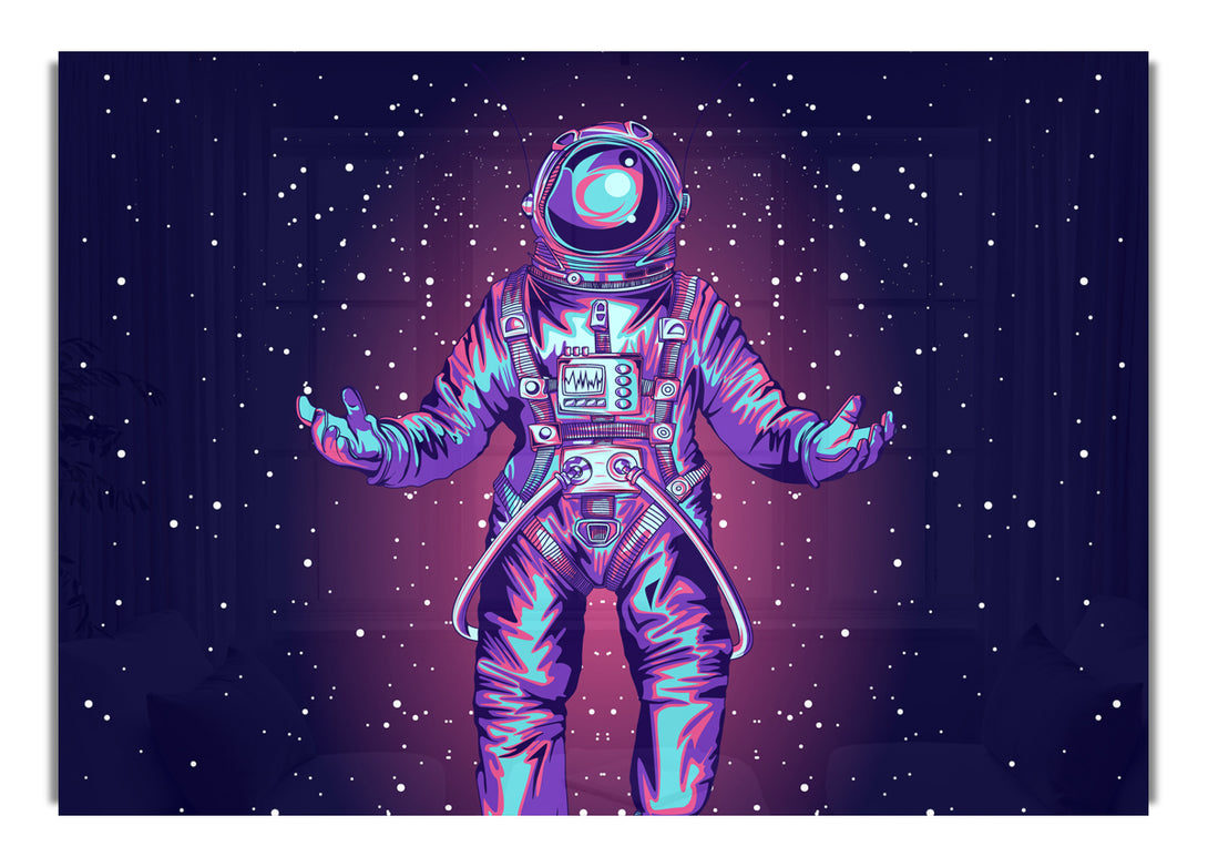 Spaceman Star Purple acrylic print, UV printed onto 5mm thick acrylic glass. Comes with everything you need to hang on your wall.