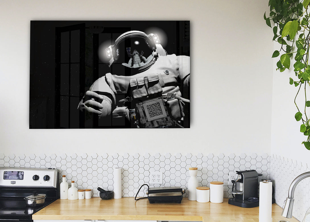 Spaceman acrylic print, UV printed onto 5mm thick acrylic glass. Comes with everything you need to hang on your wall.