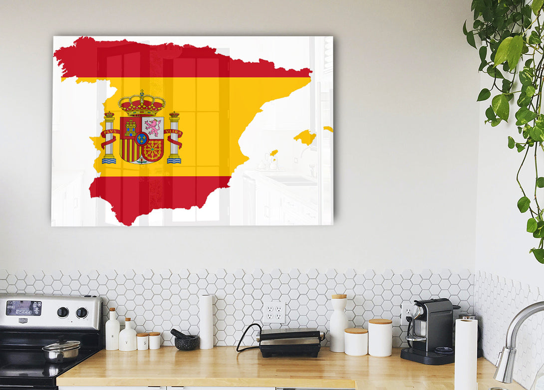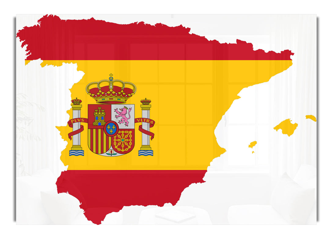 Spainish Flag Map acrylic print, UV printed onto 5mm thick acrylic glass. Comes with everything you need to hang on your wall.