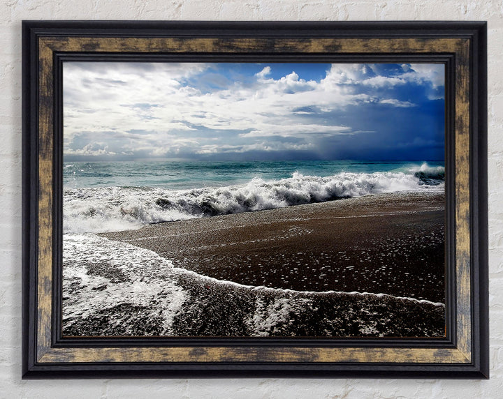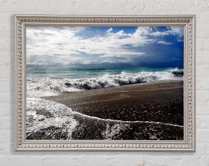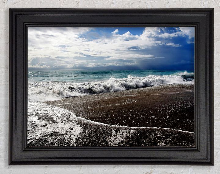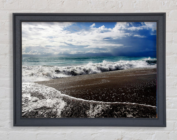 Introducing the Sparkling Ocean Flow Framed Print, a stunning piece of framed art that captures the serene beauty of the ocean. Available in six sizes, from small to oversized, this print can fit perfectly in any space, be it a cozy corner or a grand living room wall. Choose from a variety of colors to match your decor effortlessly. Each piece is handmade in the United Kingdom, ensuring high-quality craftsmanship and attention to detail. Ready to hang, this framed art will transform your home instantly, adding a touch of elegance and calm. Experience the peace and beauty of the ocean with the Sparkling Ocean Flow Framed Print today.