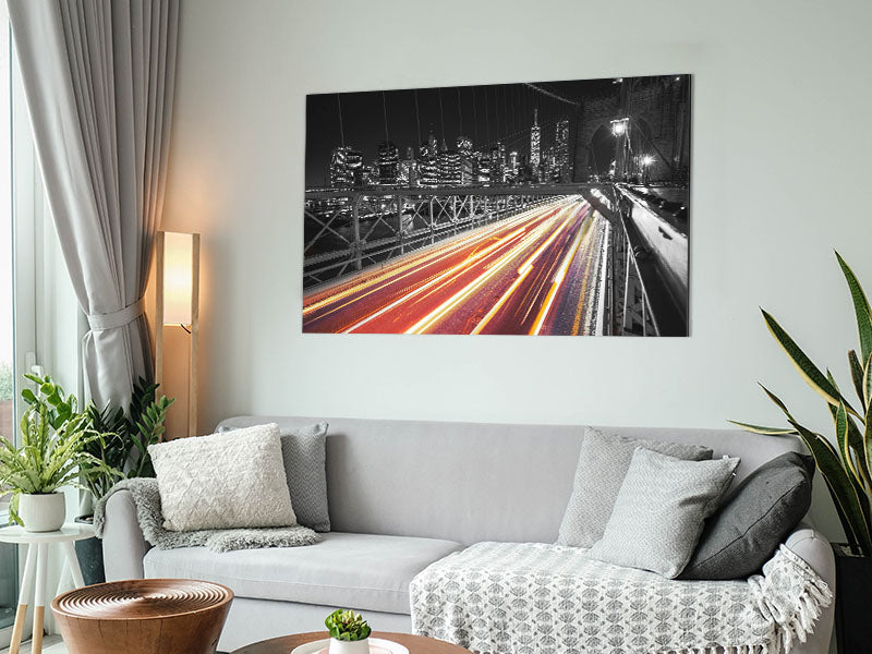 Speed Of Light On Brooklyn Bridge 2 Printed on brushed aluminium dibond. A modern way to display art and easy to maintain.
