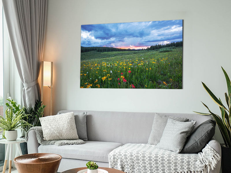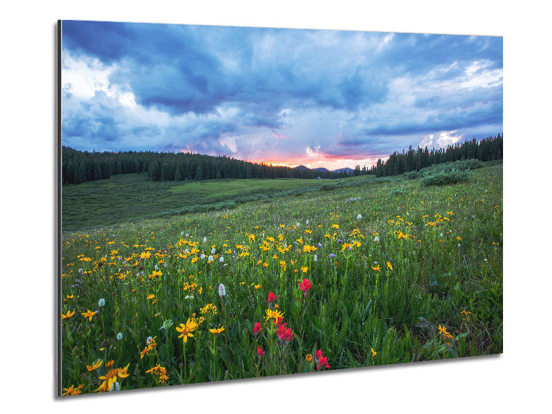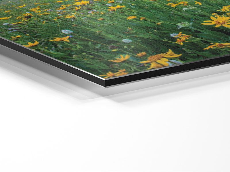 Spring meadow between the trees Printed on brushed aluminium dibond. A modern way to display art and easy to maintain.