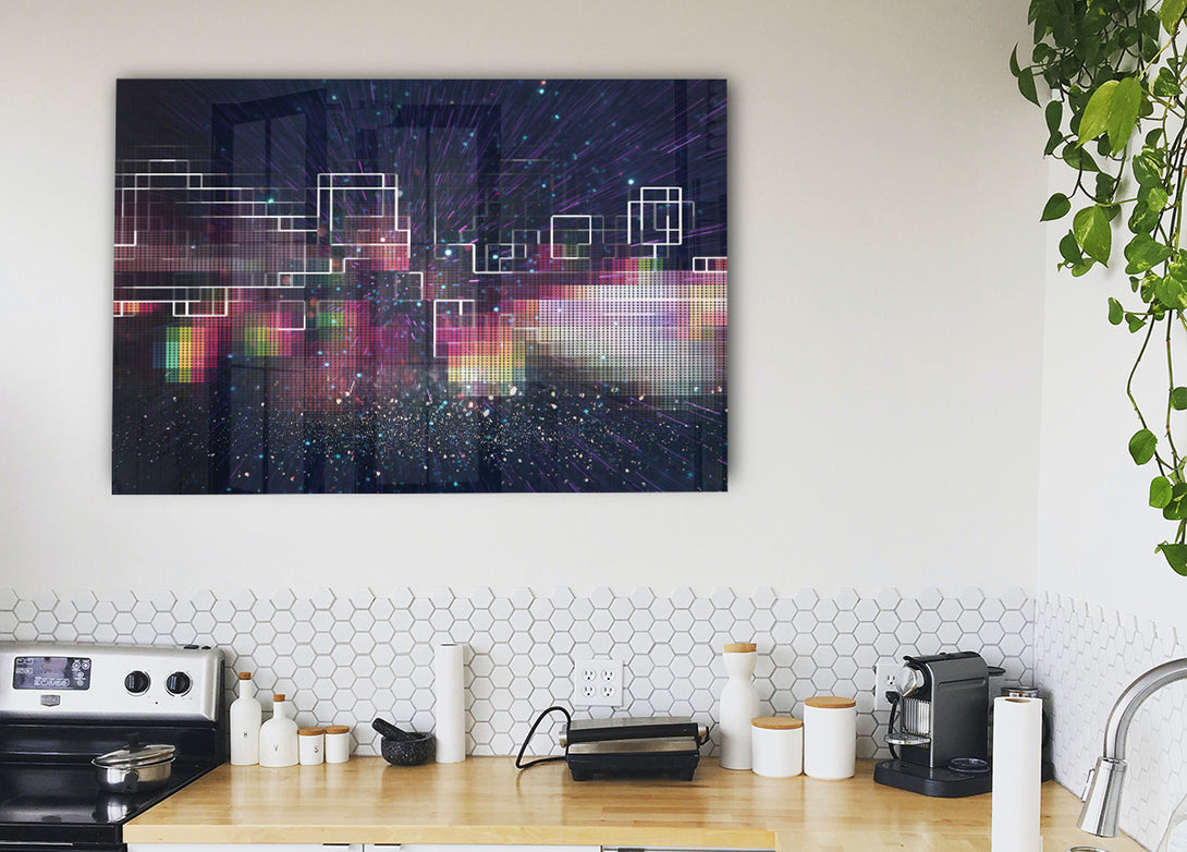 Squares Of The Universe acrylic print, UV printed onto 5mm thick acrylic glass. Comes with everything you need to hang on your wall.