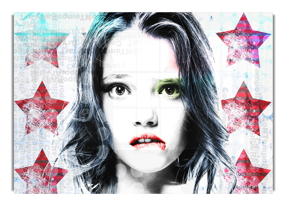Star Girl acrylic print, UV printed onto 5mm thick acrylic glass. Comes with everything you need to hang on your wall.
