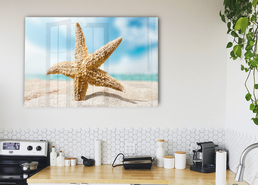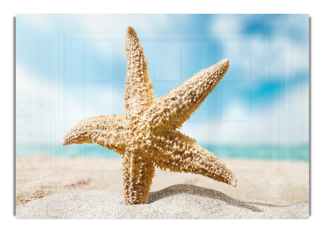 Starfish in detail sands acrylic print, UV printed onto 5mm thick acrylic glass. Comes with everything you need to hang on your wall.