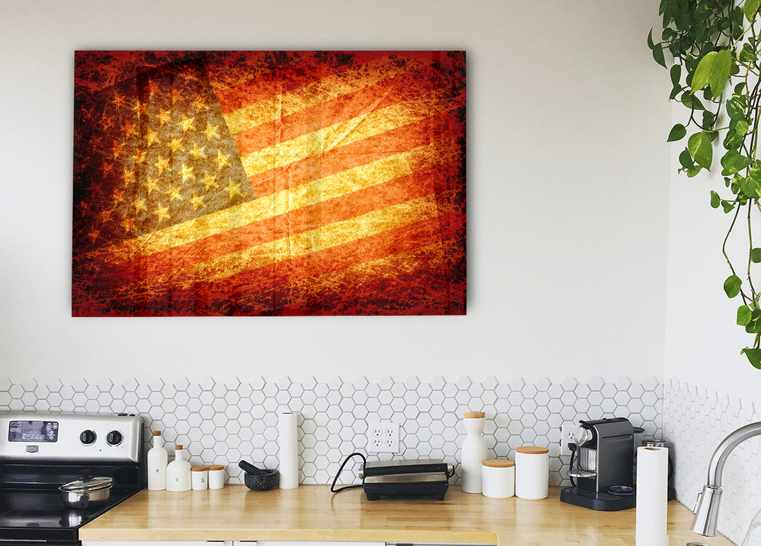 Stars And Stripes Grunge acrylic print, UV printed onto 5mm thick acrylic glass. Comes with everything you need to hang on your wall.