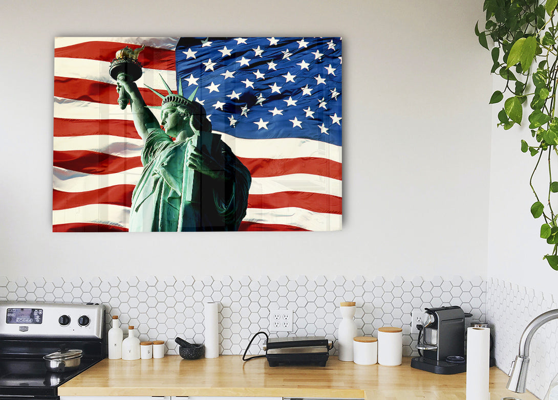 Stars And Stripes With Lady Liberty acrylic print, UV printed onto 5mm thick acrylic glass. Comes with everything you need to hang on your wall.