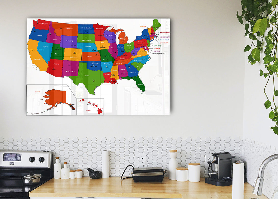 States Of America 4 acrylic print, UV printed onto 5mm thick acrylic glass. Comes with everything you need to hang on your wall.