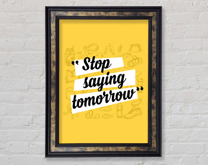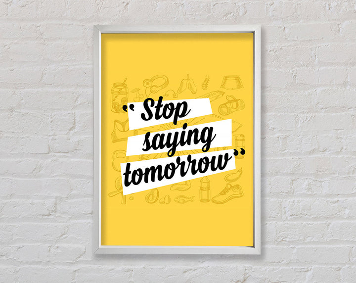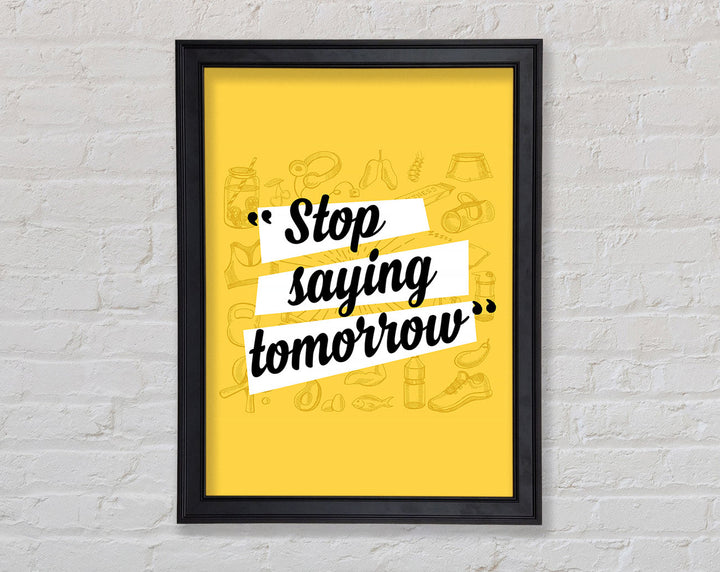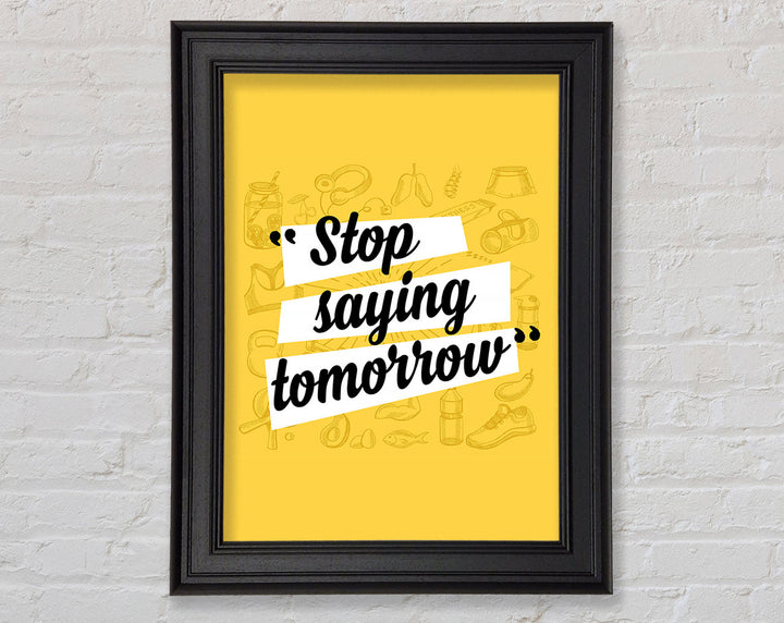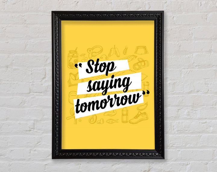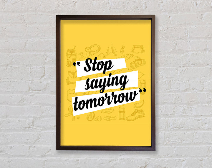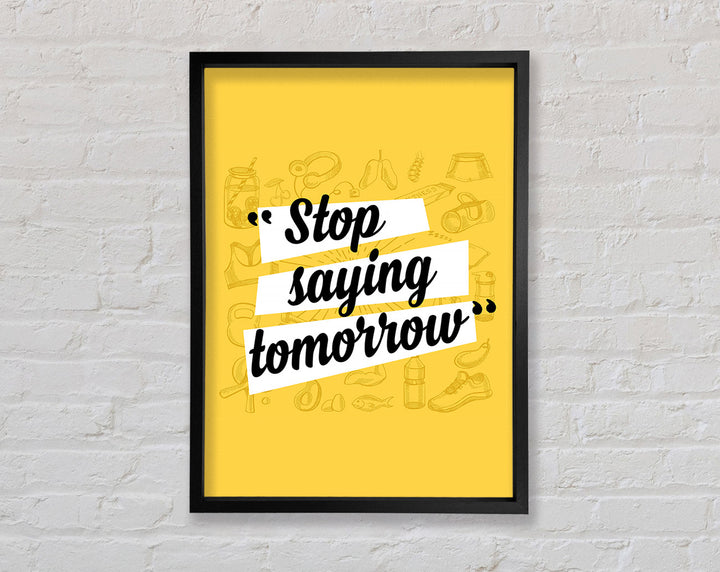 Introducing the "Stop Saying Tomorrow" Framed Print, a striking piece of framed art designed to inspire and motivate. Handmade in the United Kingdom, this print is available in six different sizes, ranging from small to oversized, ensuring a perfect fit for any space. Choose from a variety of colors to match your decor and personal style.