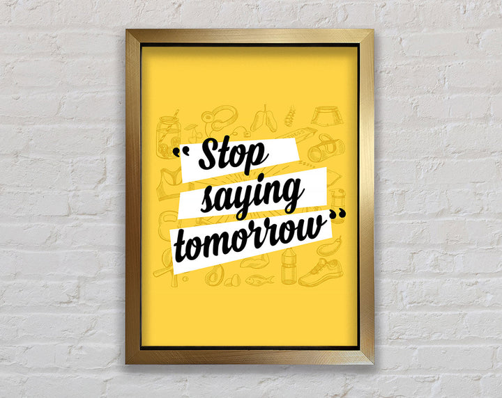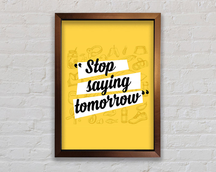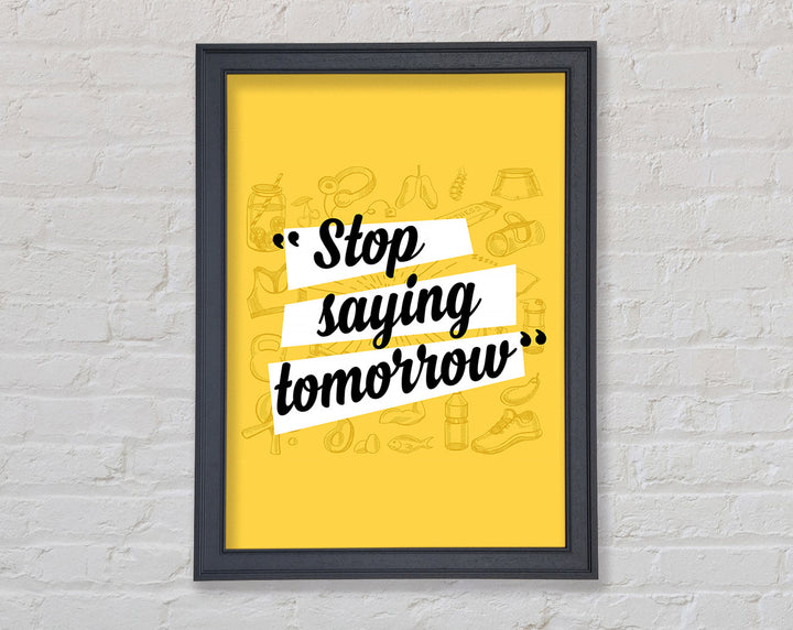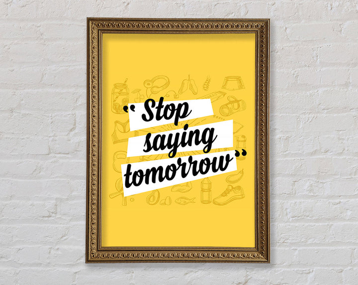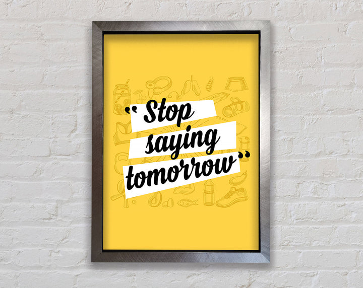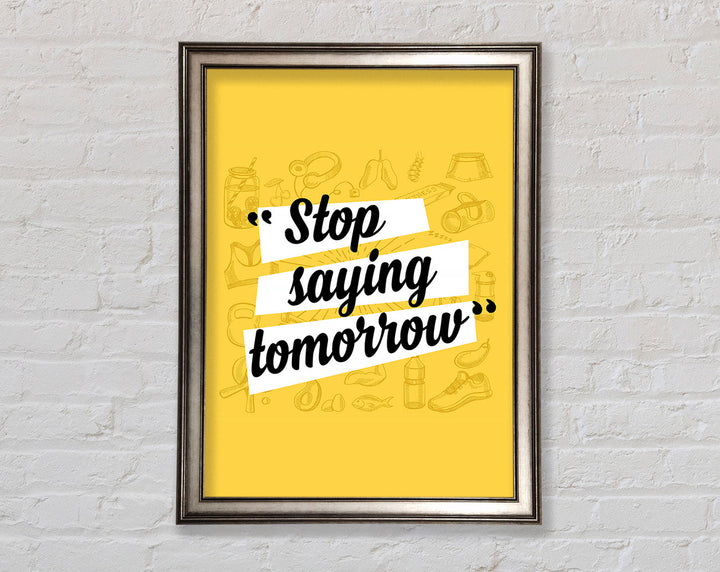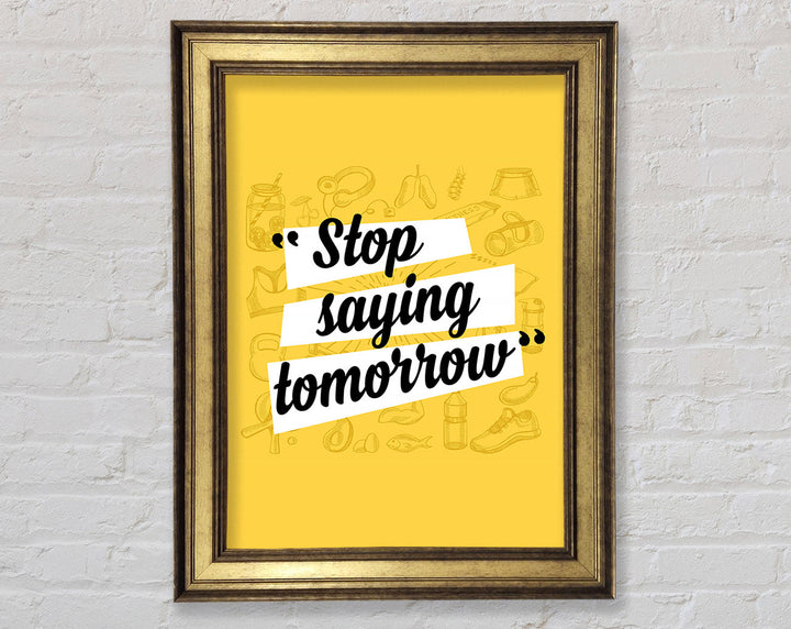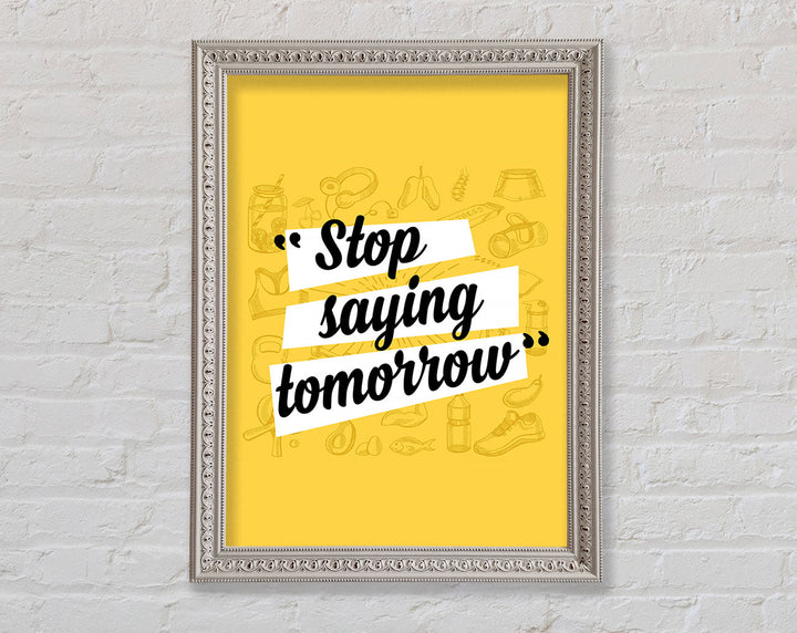 Introducing the "Stop Saying Tomorrow" Framed Print, a striking piece of framed art designed to inspire and motivate. Handmade in the United Kingdom, this print is available in six different sizes, ranging from small to oversized, ensuring a perfect fit for any space. Choose from a variety of colors to match your decor and personal style.
