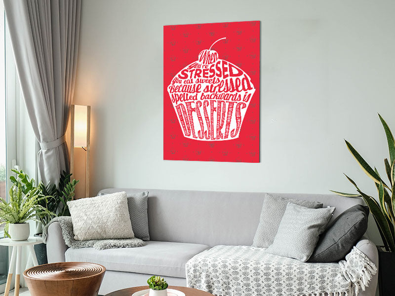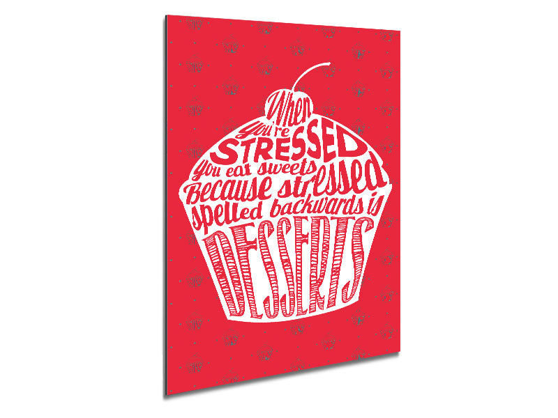 Stressed Spelled Backwards Desserts Printed on brushed aluminium dibond. A modern way to display art and easy to maintain.