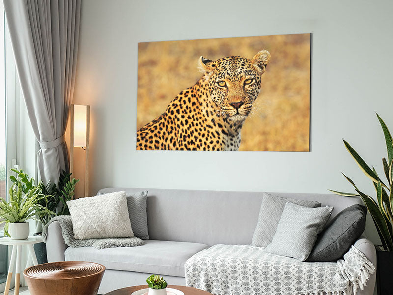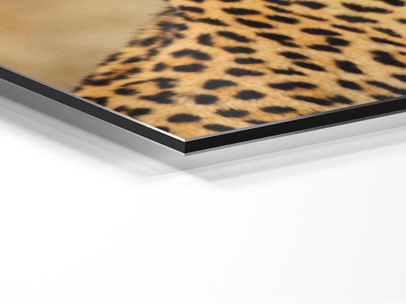 Stunning Leopard Printed on brushed aluminium dibond. A modern way to display art and easy to maintain.