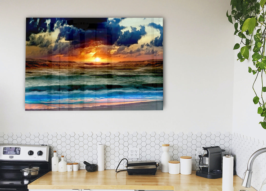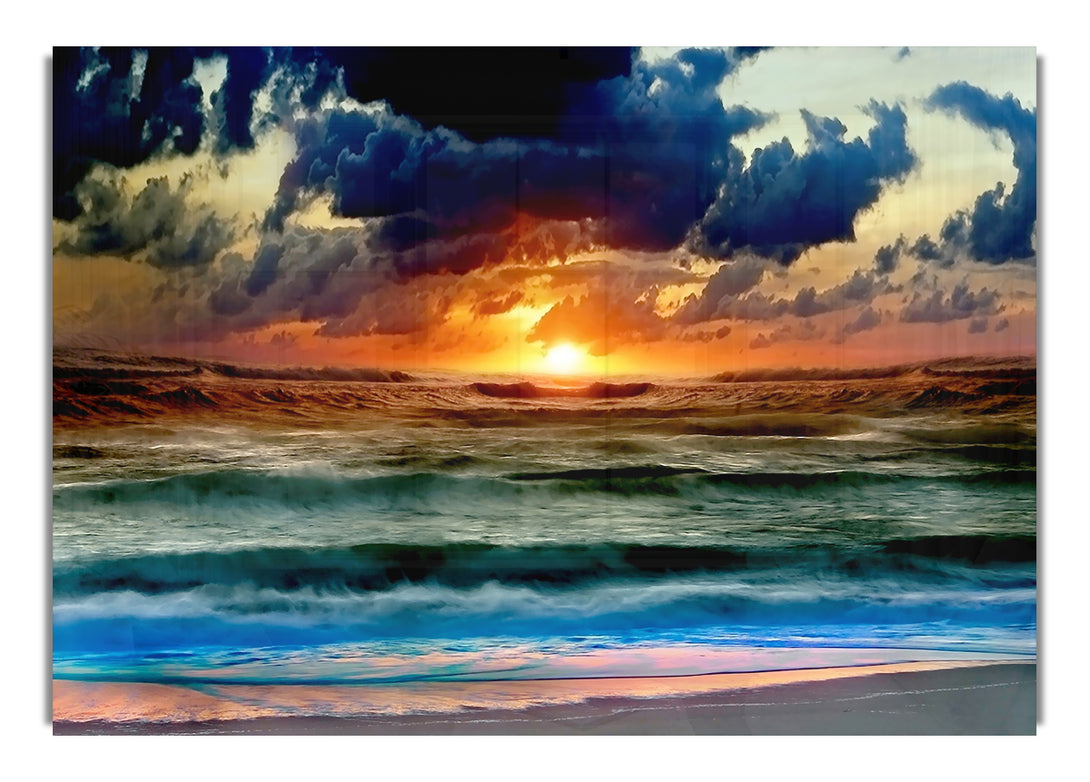 Stunning Ocean Sun Clouds acrylic print, UV printed onto 5mm thick acrylic glass. Comes with everything you need to hang on your wall.