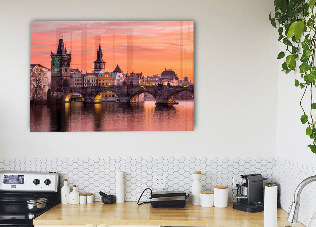 Stunning Pink Skies Over The City acrylic print, UV printed onto 5mm thick acrylic glass. Comes with everything you need to hang on your wall.