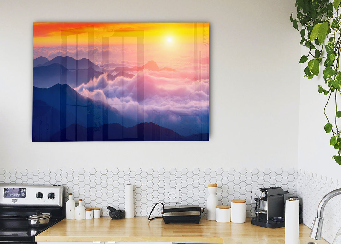 Sun Above The Mountain Clouds acrylic print, UV printed onto 5mm thick acrylic glass. Comes with everything you need to hang on your wall.