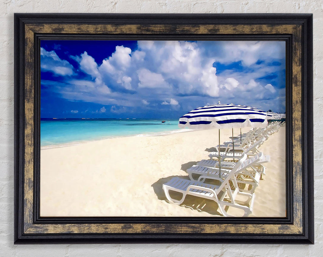 Sun Beds On The Island Of Paradise Framed Print