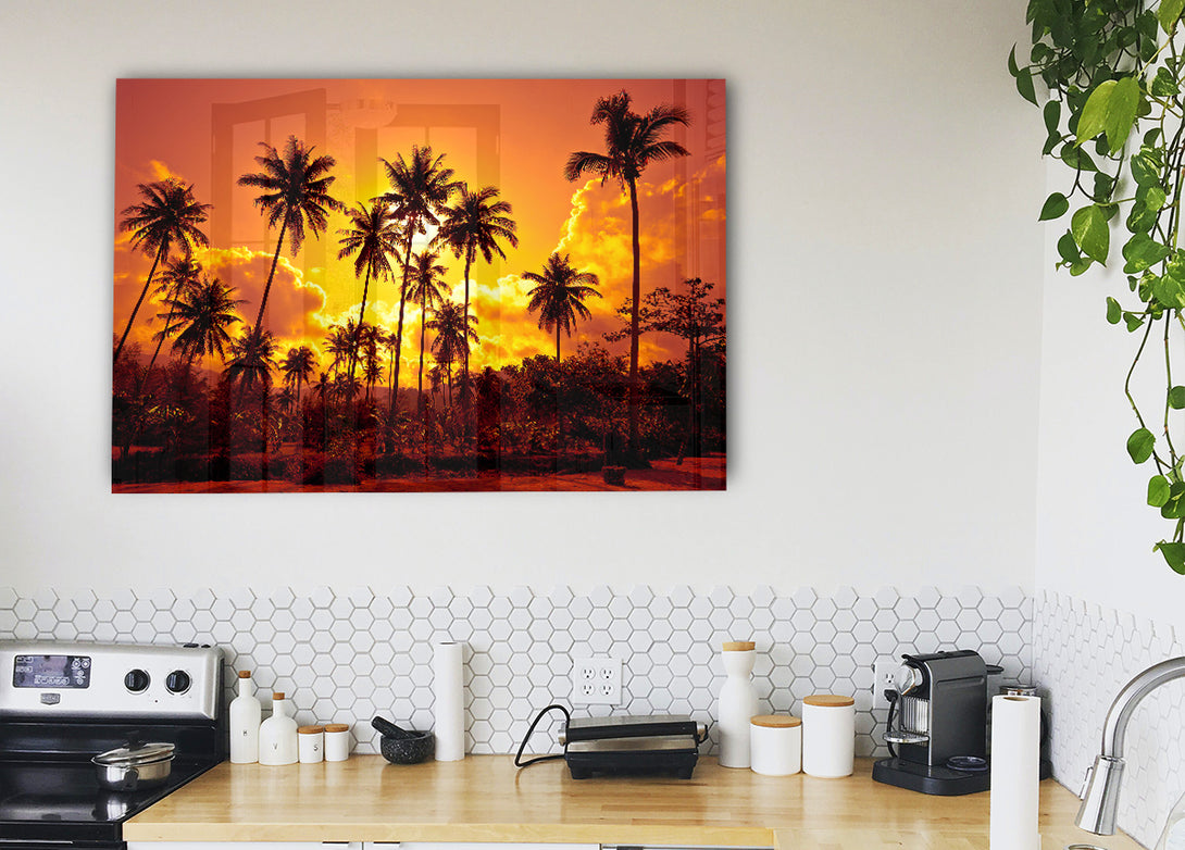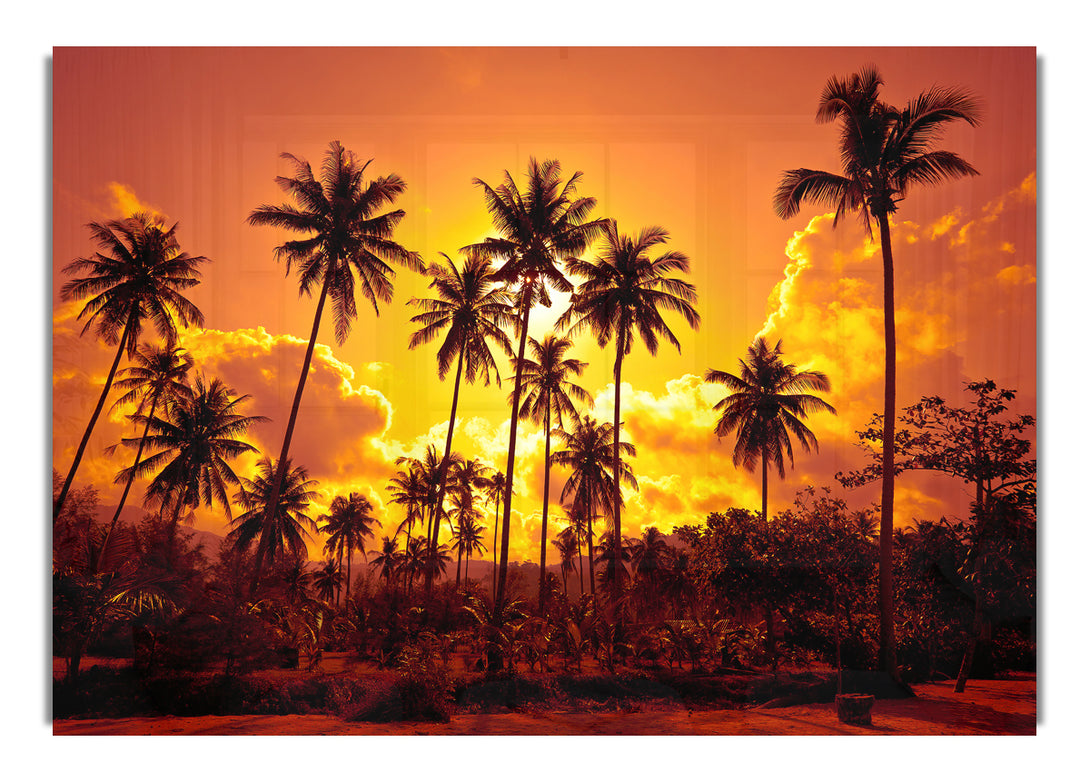 Sun Behind The Palm Trees acrylic print, UV printed onto 5mm thick acrylic glass. Comes with everything you need to hang on your wall.
