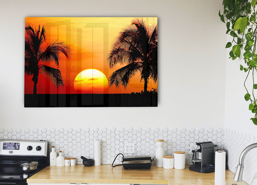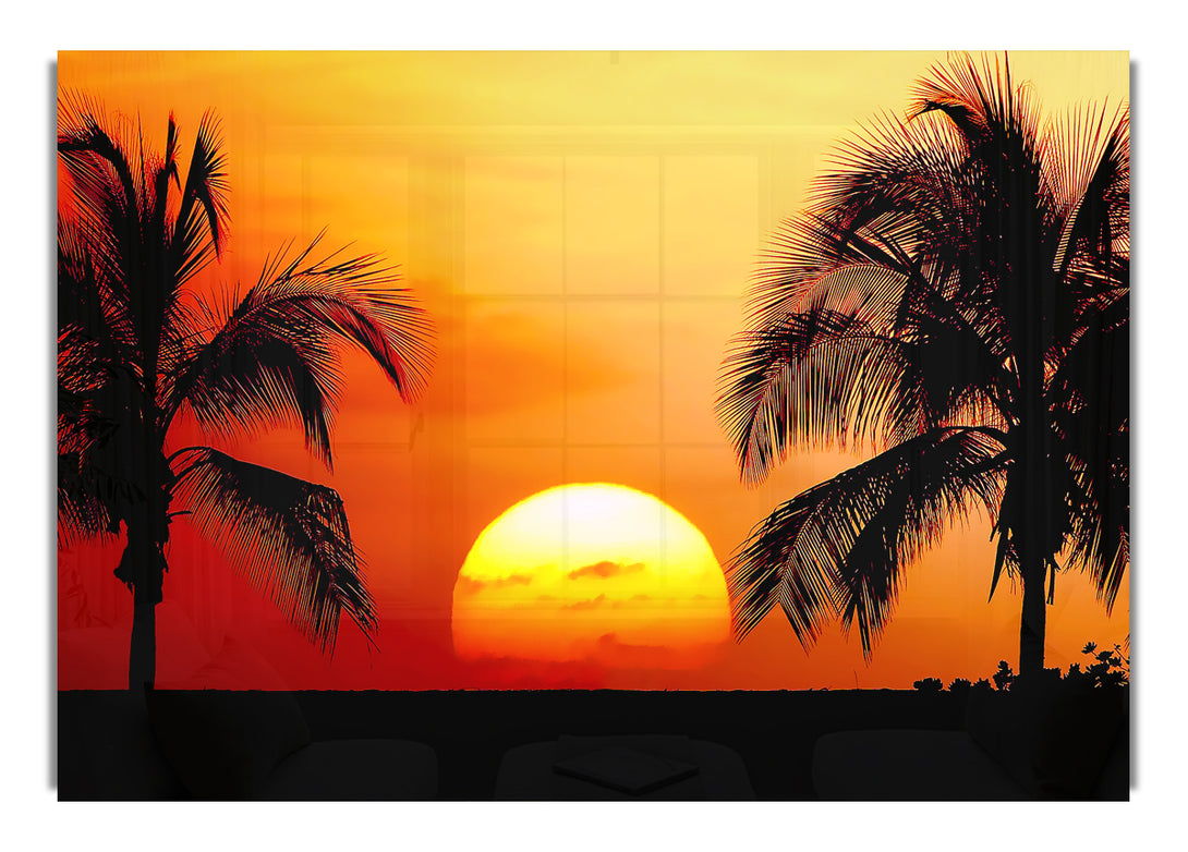Sun Between The Palmtrees acrylic print, UV printed onto 5mm thick acrylic glass. Comes with everything you need to hang on your wall.