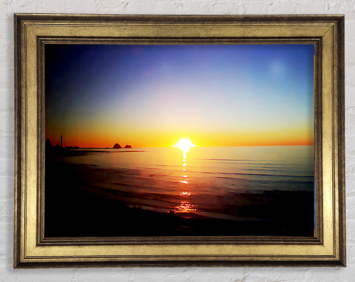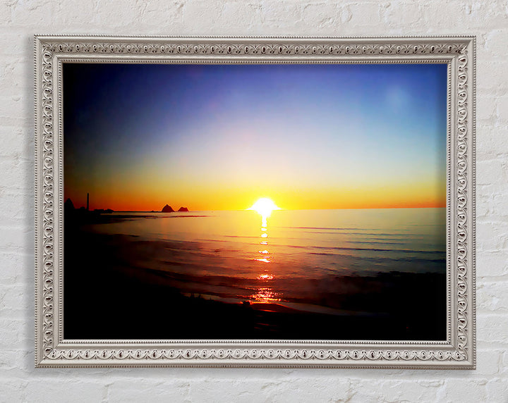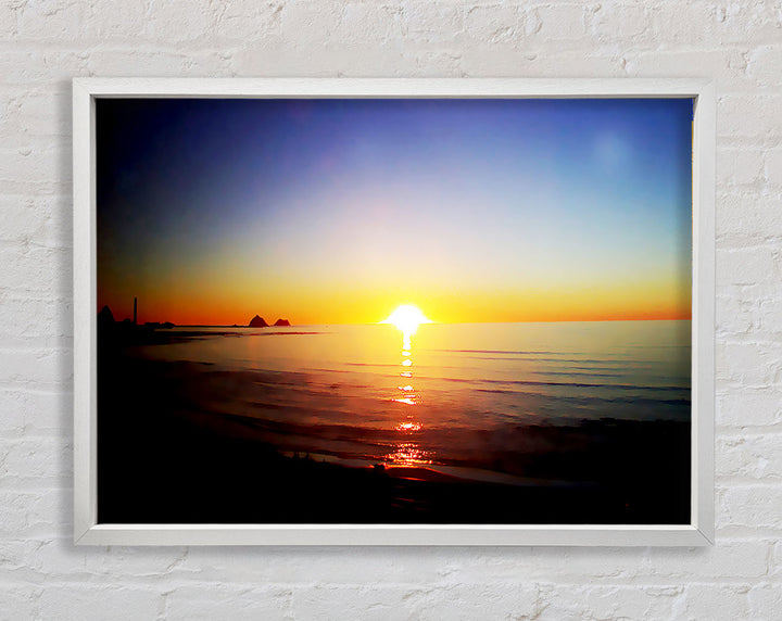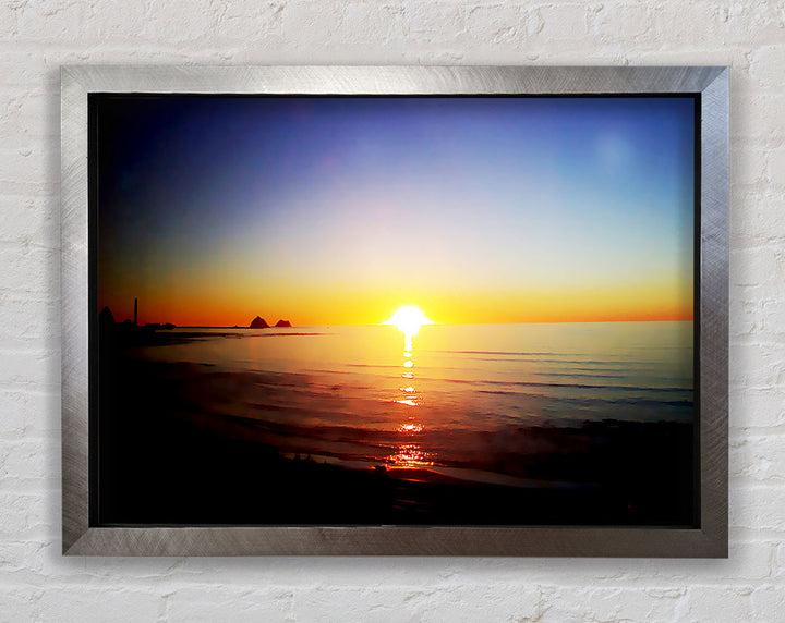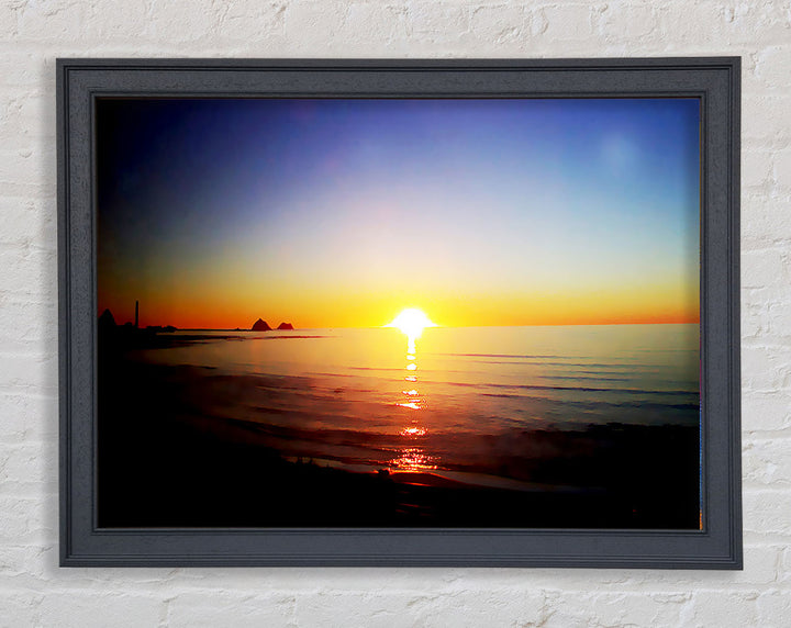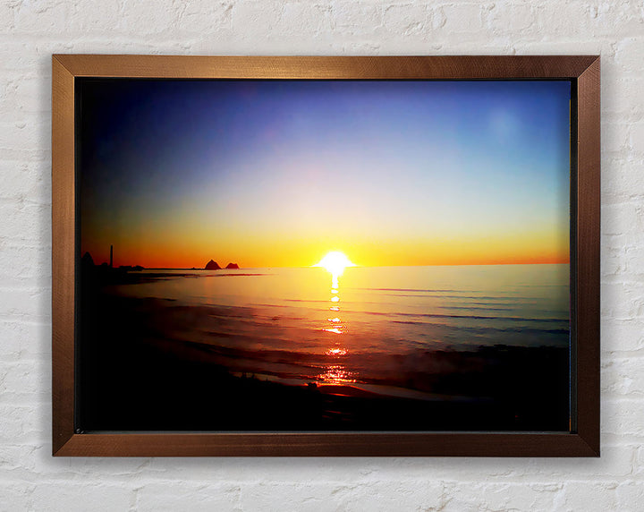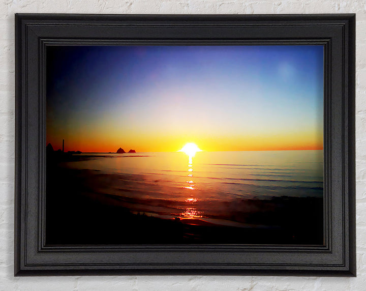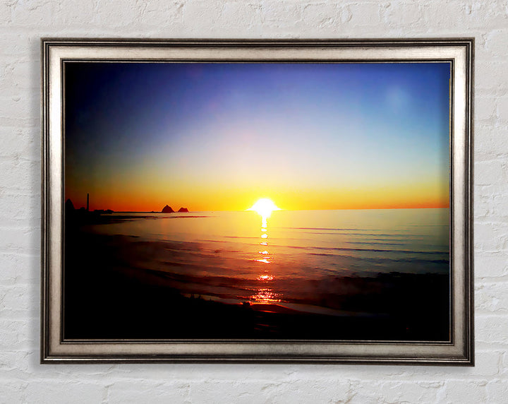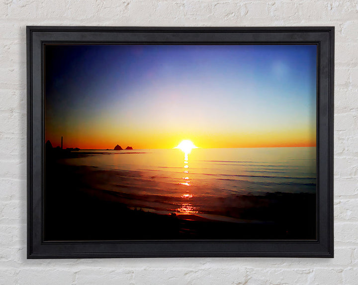 Introducing the Sun Blaze Around The Ocean Framed Print, a stunning piece of framed art that brings the beauty of a radiant sunset over the ocean right into your home. Each print is handmade in the United Kingdom, ensuring exceptional quality and craftsmanship. Available in six sizes, from small to oversized, this artwork fits perfectly in any space, be it a cozy corner or a grand living room. Choose from a variety of colors to match your decor style. The print comes ready to hang, making it hassle-free to display. Brighten your home with this beautiful piece that captures the serene and captivating essence of nature.