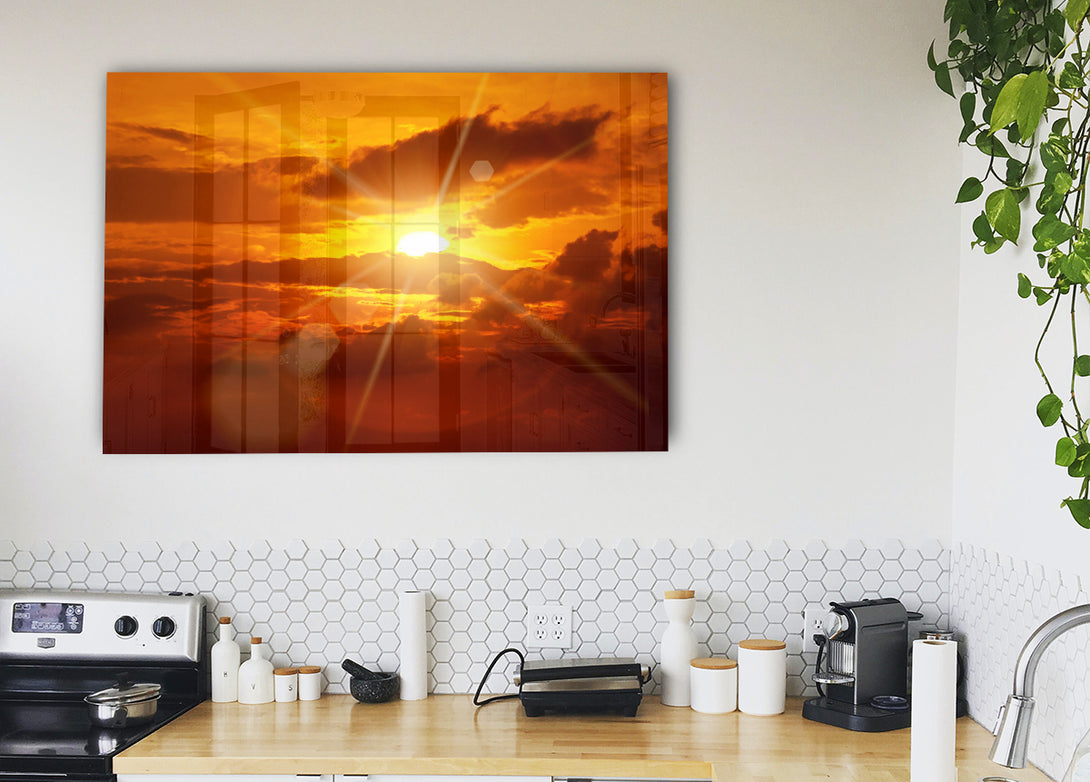 Sun Blaze Clouds acrylic print, UV printed onto 5mm thick acrylic glass. Comes with everything you need to hang on your wall.