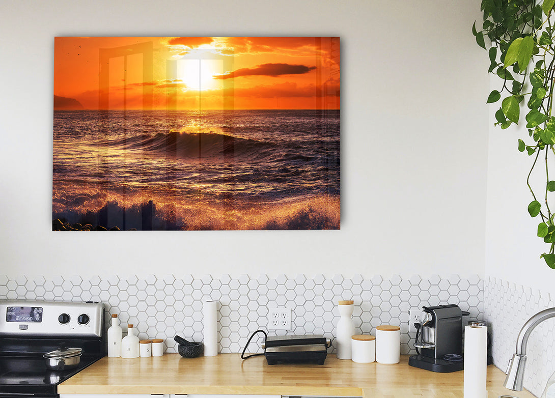 Sun Blaze Waves acrylic print, UV printed onto 5mm thick acrylic glass. Comes with everything you need to hang on your wall.