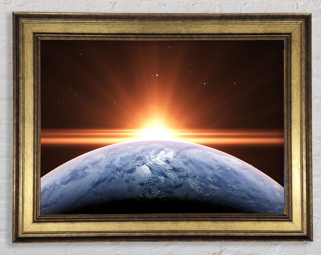 Sun peering over the earth Framed Print