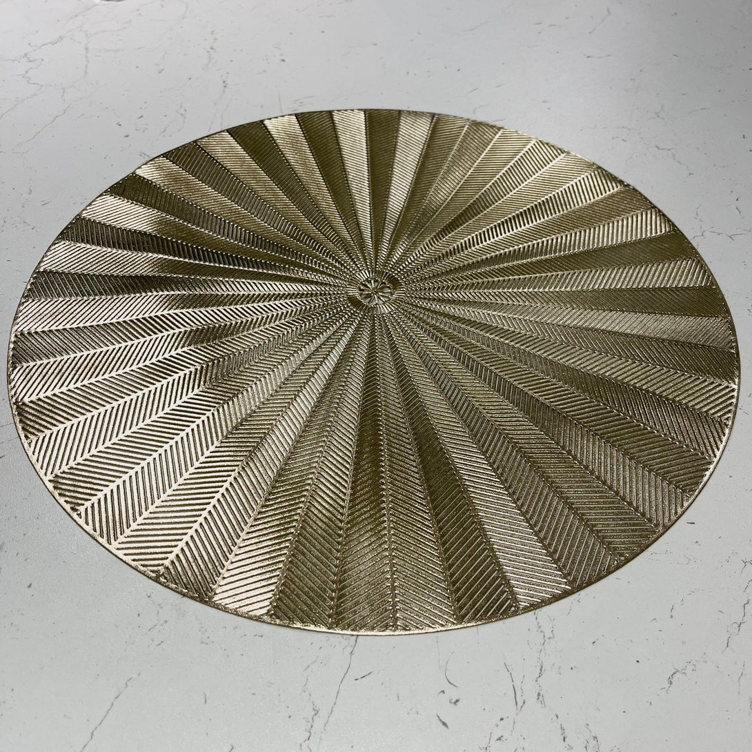 Featuring a bold, geometric sunburst pattern, this gold placemat instantly elevates your dining space with its shimmering finish and eye-catching design.