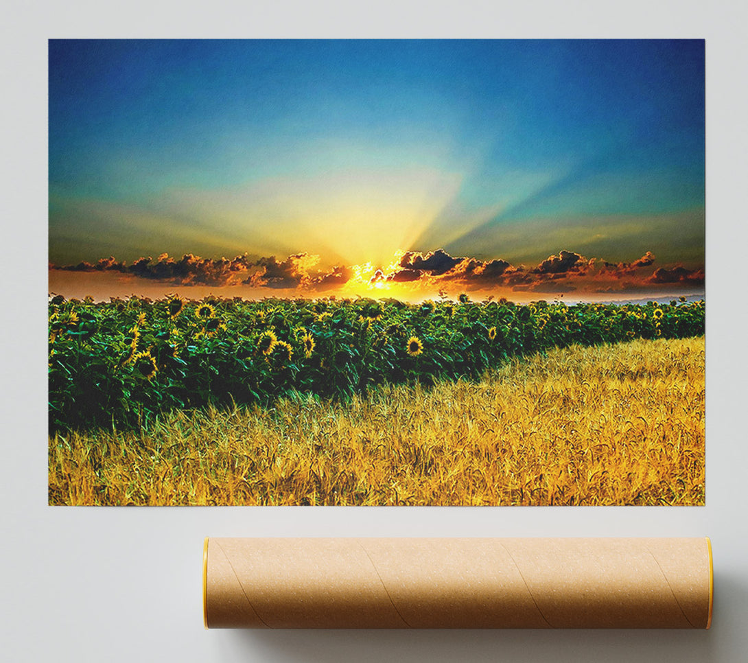 Our Sunflower Field Sunset Poster is printed 260 GSM premium lustre paper that offers vibrant colours and exceptional detail.