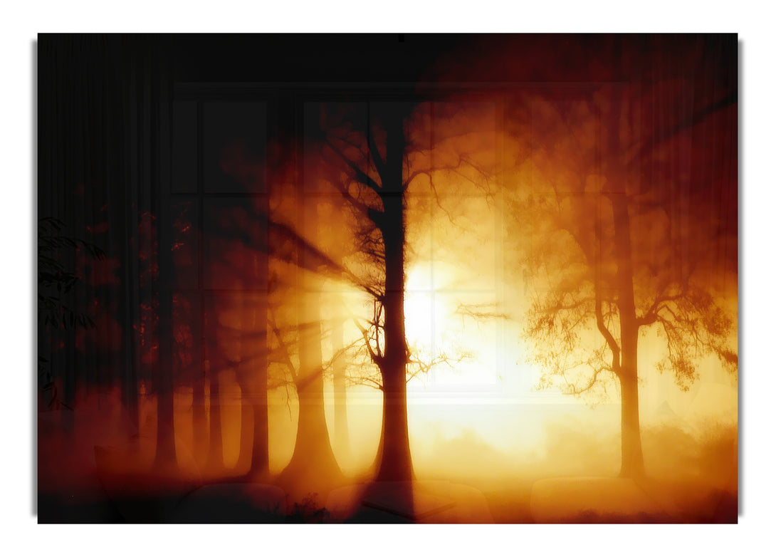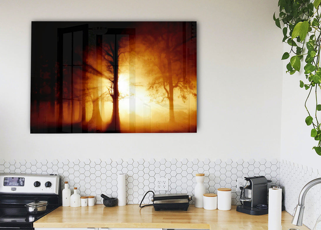 Sunlight Through The Forest acrylic print, UV printed onto 5mm thick acrylic glass. Comes with everything you need to hang on your wall.