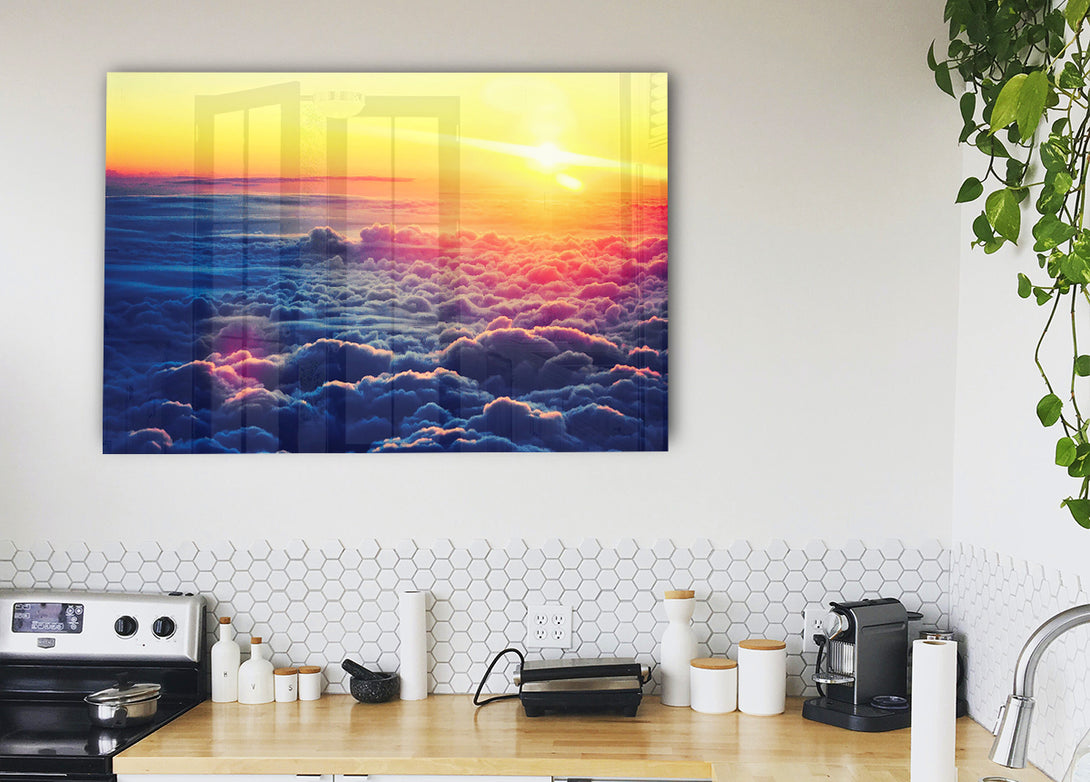 Sunrise Above The Clouds acrylic print, UV printed onto 5mm thick acrylic glass. Comes with everything you need to hang on your wall.