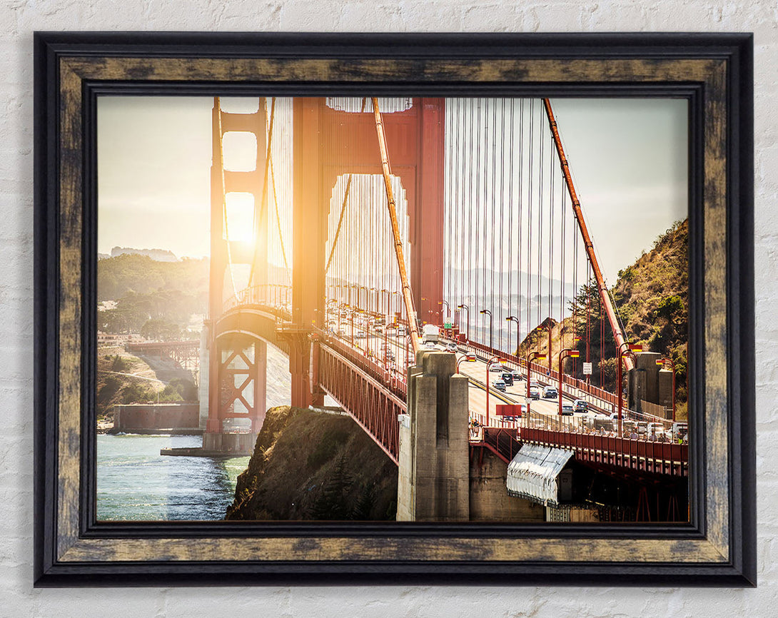 Sunrise Glow Over The Golden Gate Bridge Framed Print
