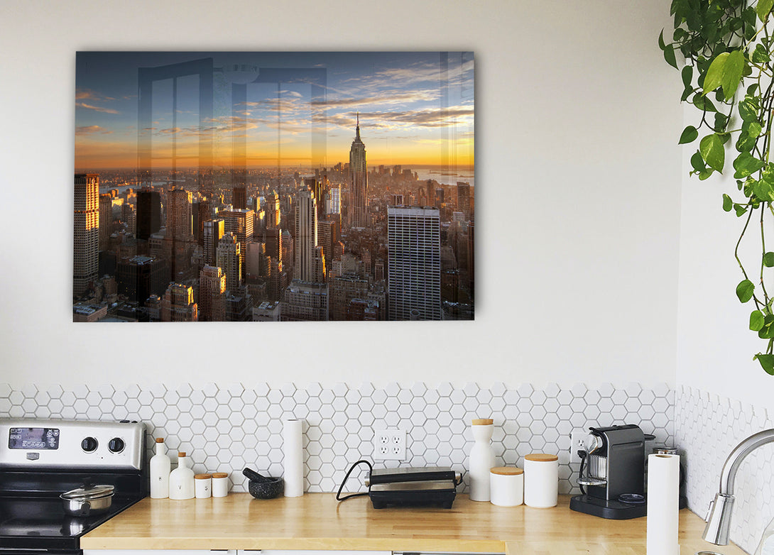 Sunrise Over The City That Never Sleeps acrylic print, UV printed onto 5mm thick acrylic glass. Comes with everything you need to hang on your wall.