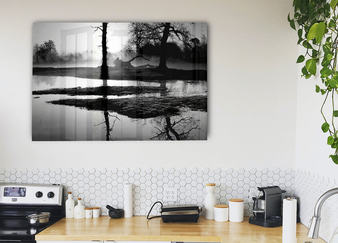 Sunset Forrest Waters B~w acrylic print, UV printed onto 5mm thick acrylic glass. Comes with everything you need to hang on your wall.