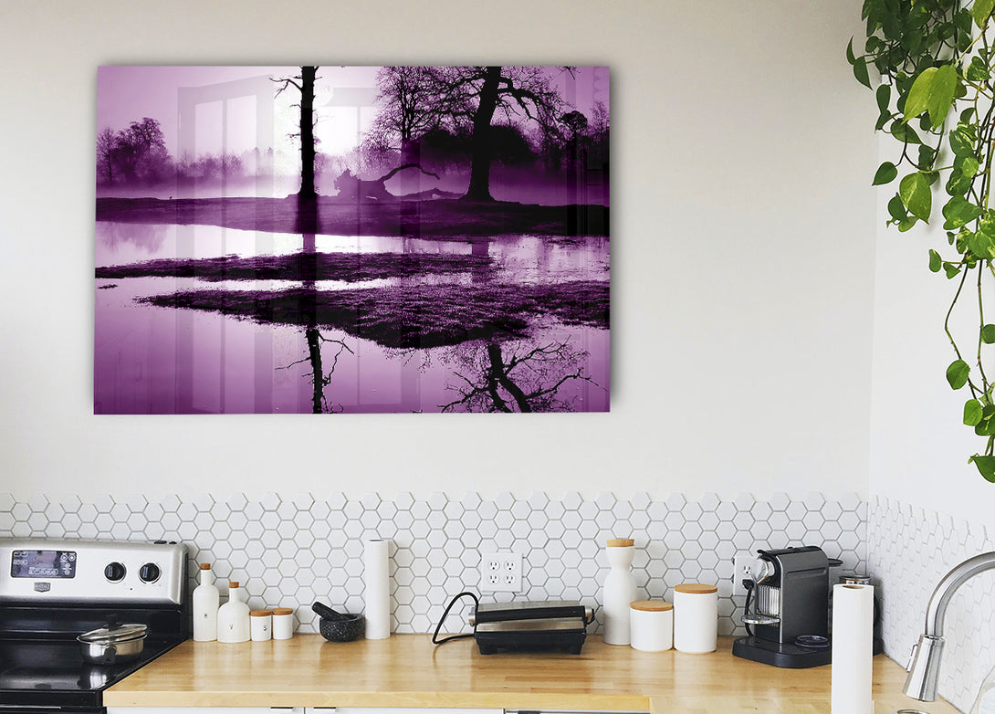 Sunset Forrest Waters Purple acrylic print, UV printed onto 5mm thick acrylic glass. Comes with everything you need to hang on your wall.