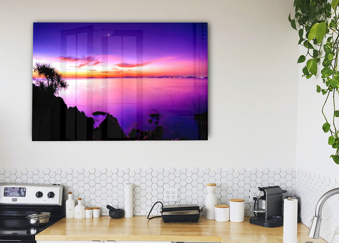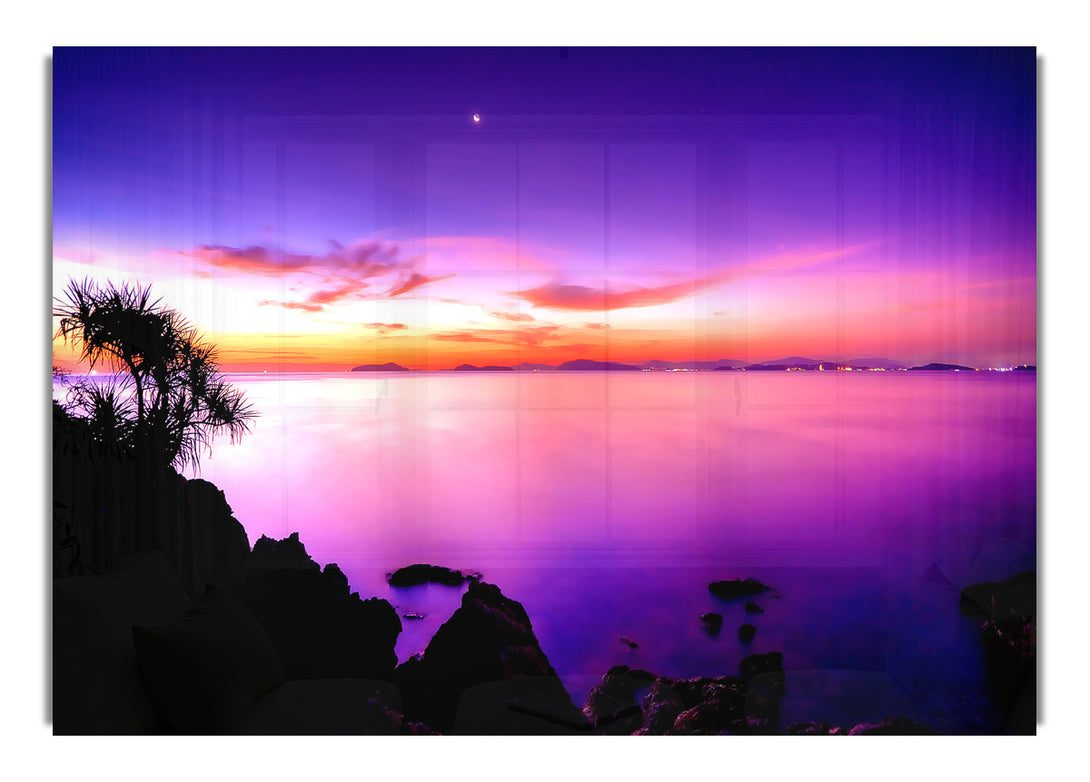 Sunset Moon acrylic print, UV printed onto 5mm thick acrylic glass. Comes with everything you need to hang on your wall.