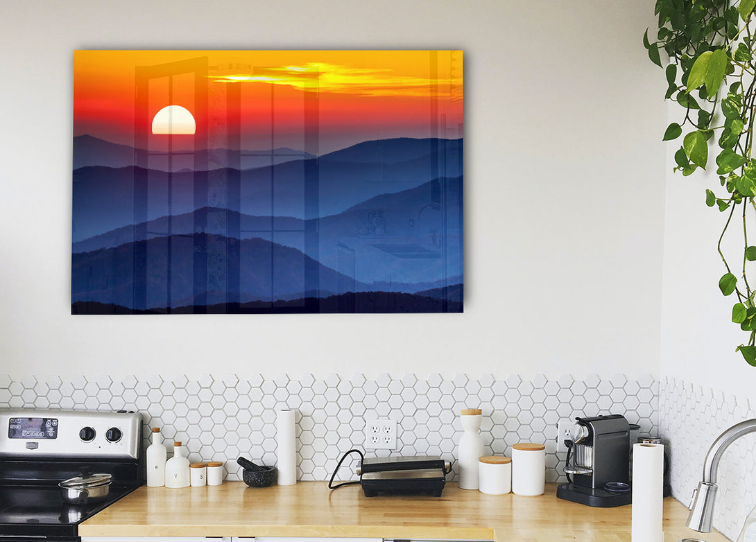Sunset Mountain Blues acrylic print, UV printed onto 5mm thick acrylic glass. Comes with everything you need to hang on your wall.