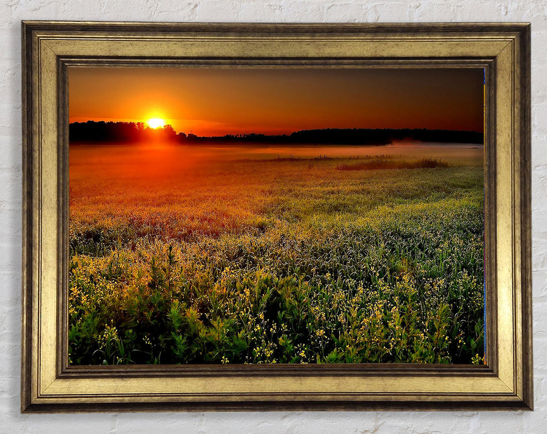 Sunset Over The Field Framed Print