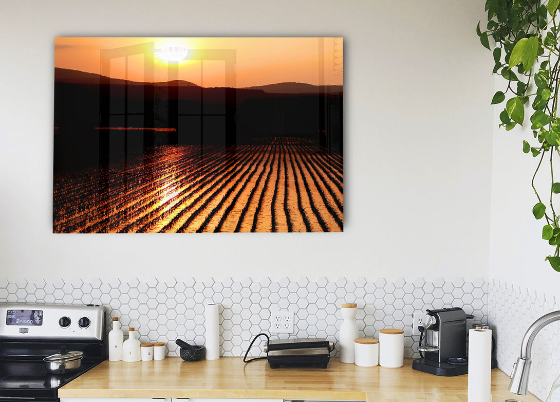 Sunset Over The Wheatfield acrylic print, UV printed onto 5mm thick acrylic glass. Comes with everything you need to hang on your wall.